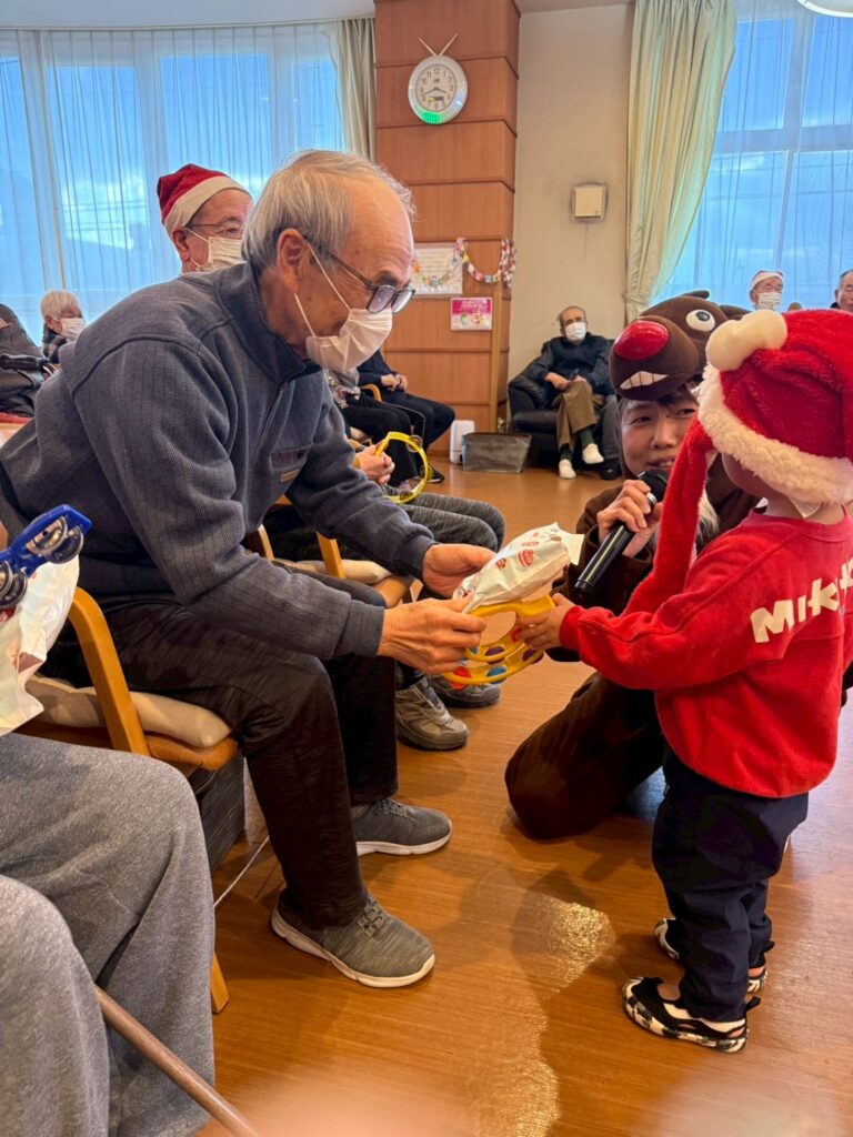 12月25日保育園児とのプチクリスマス会がありました。その後大ビンゴ大会があり全員にプレゼントが当たりました☆