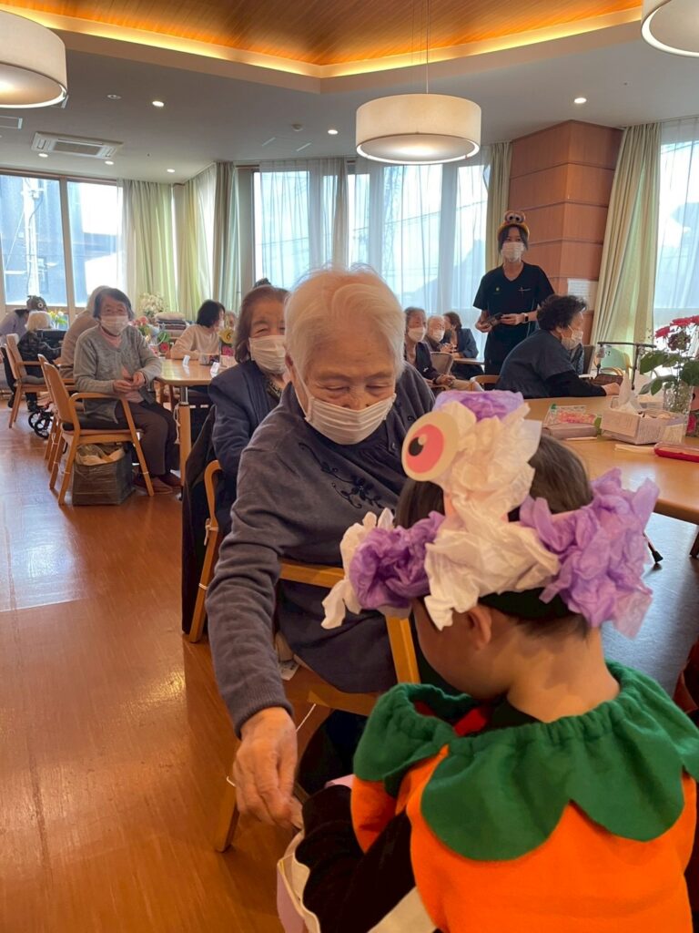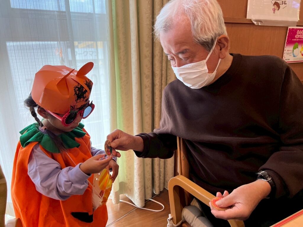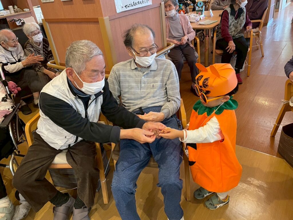 せんだんの丘保育園の子供たちがハロウィンイベントで10月来てくれました★紙で作ったお菓子をあげました☆