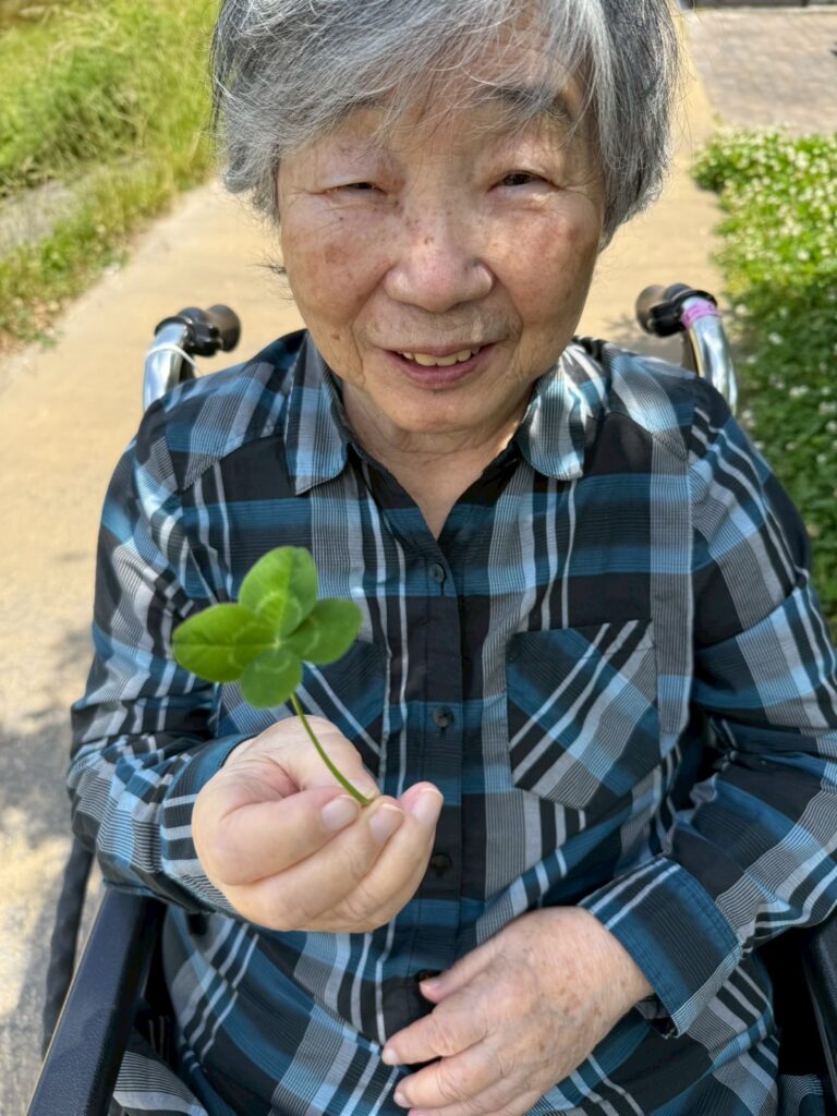 ご入居者様のおいしい笑顔や四葉のクローバーを見つけて喜ばれるお顔を見られて、こちらも嬉しい笑顔となりました♪