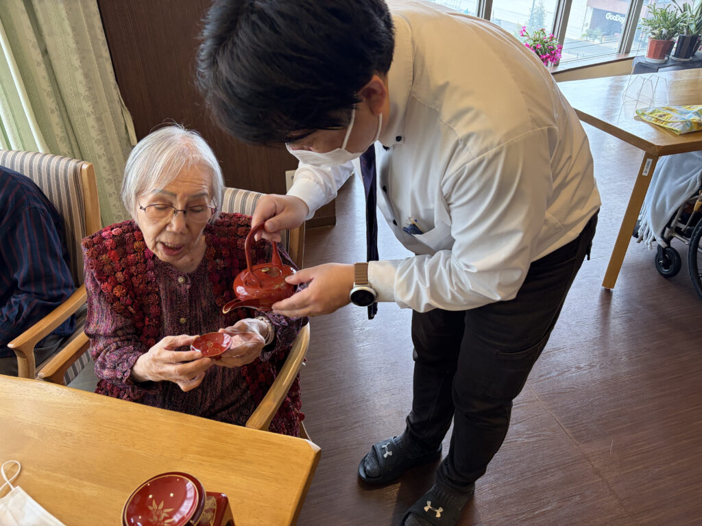 新年の始まりに、皆様の健康と長寿を願ってお屠蘇をお楽しみいただきました。