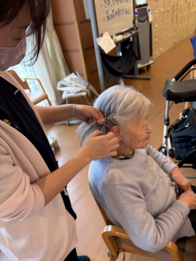 髪の毛を結いました(デイサービス)