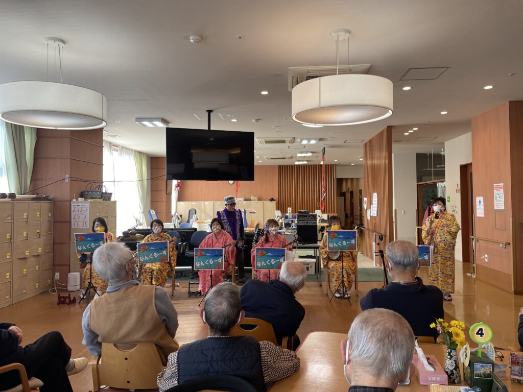 3月はナンクルーズという沖縄の歌をうたうボランティアが来訪されました♪みんなで一緒に歌を歌い楽しいひと時を過ごすことができました☆