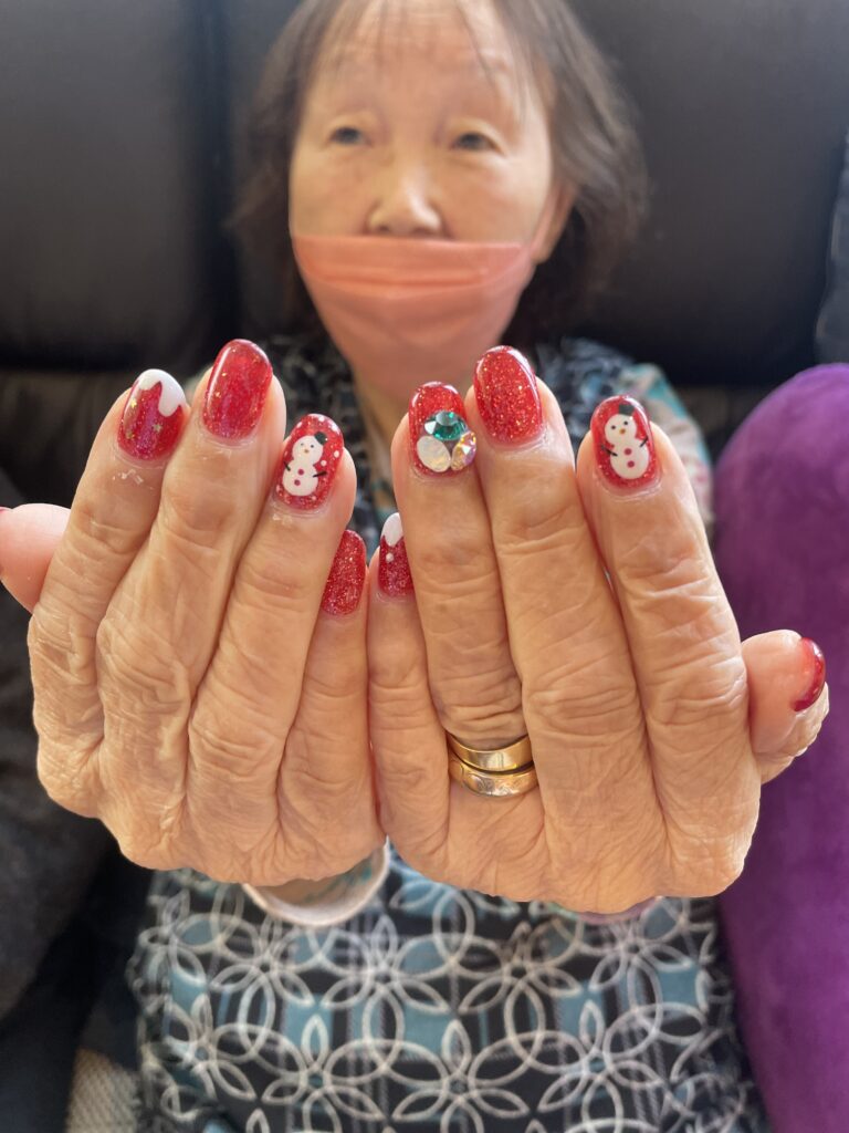 2025.12.30クリスマス仕様のネイル(デイサービス)